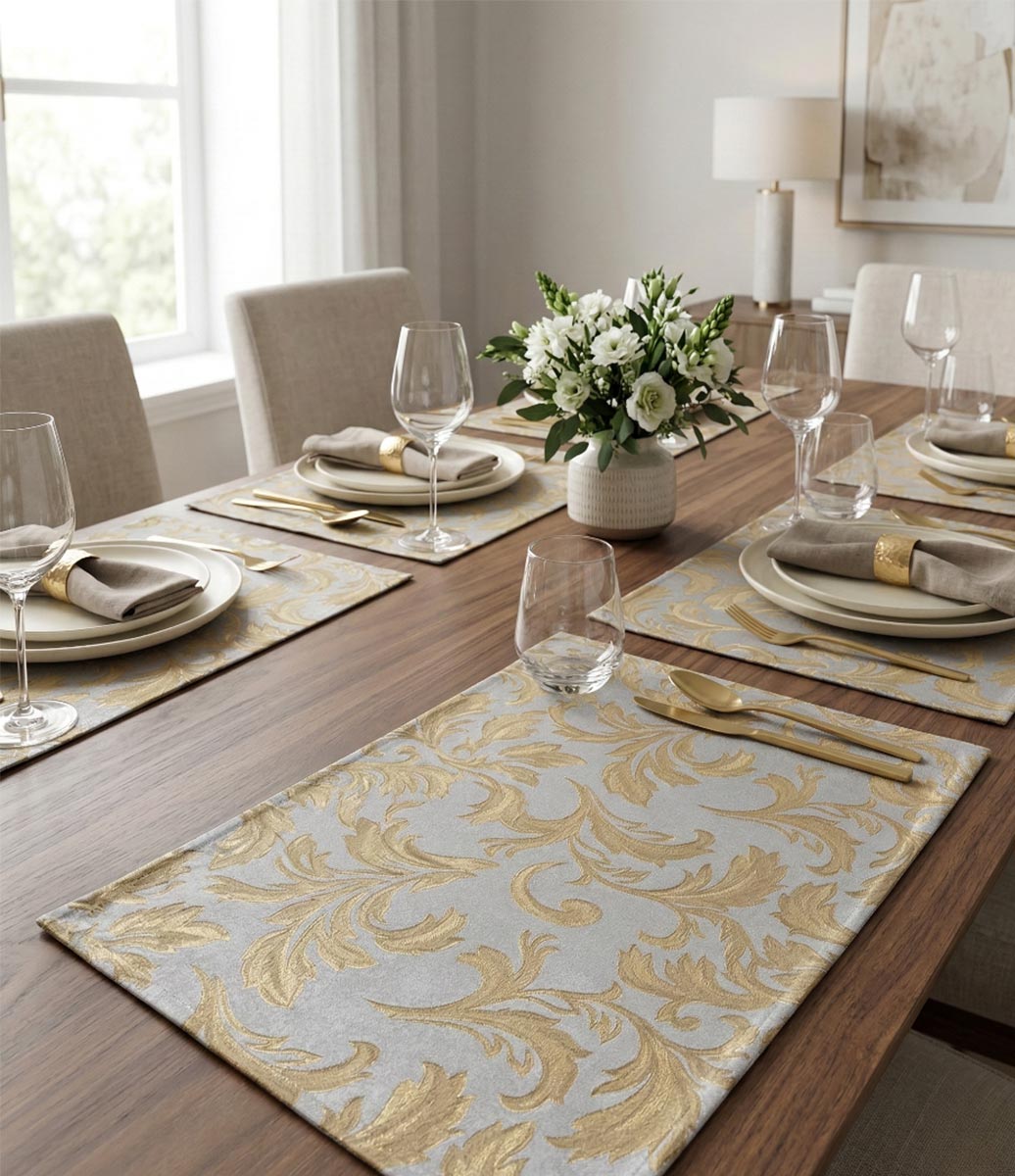 Prepare-se para elevar o charme de suas refeições com o Jogo Americano Bege com Arabescos. Este exuberante acessório de mesa não é apenas funcional, mas uma declaração de estilo que adiciona um toque de sofisticação a cada refeição.