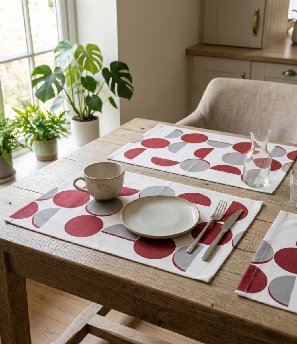 Os Jogos Americanos Impermeáveis Branco Geométrico são extremamente versáteis e podem ser usados de várias maneiras para elevar a decoração da sua mesa. Para um visual minimalista, combine-os com louças neutras ou pretas para criar contraste e adicione detalhes metálicos, como talheres dourados ou prateados, para um toque refinado. Se você prefere algo mais vibrante, aposte em guardanapos vermelhos para combinar com a cor da estampa ou flores naturais como centro de mesa para criar um contraste com o branco geométrico.