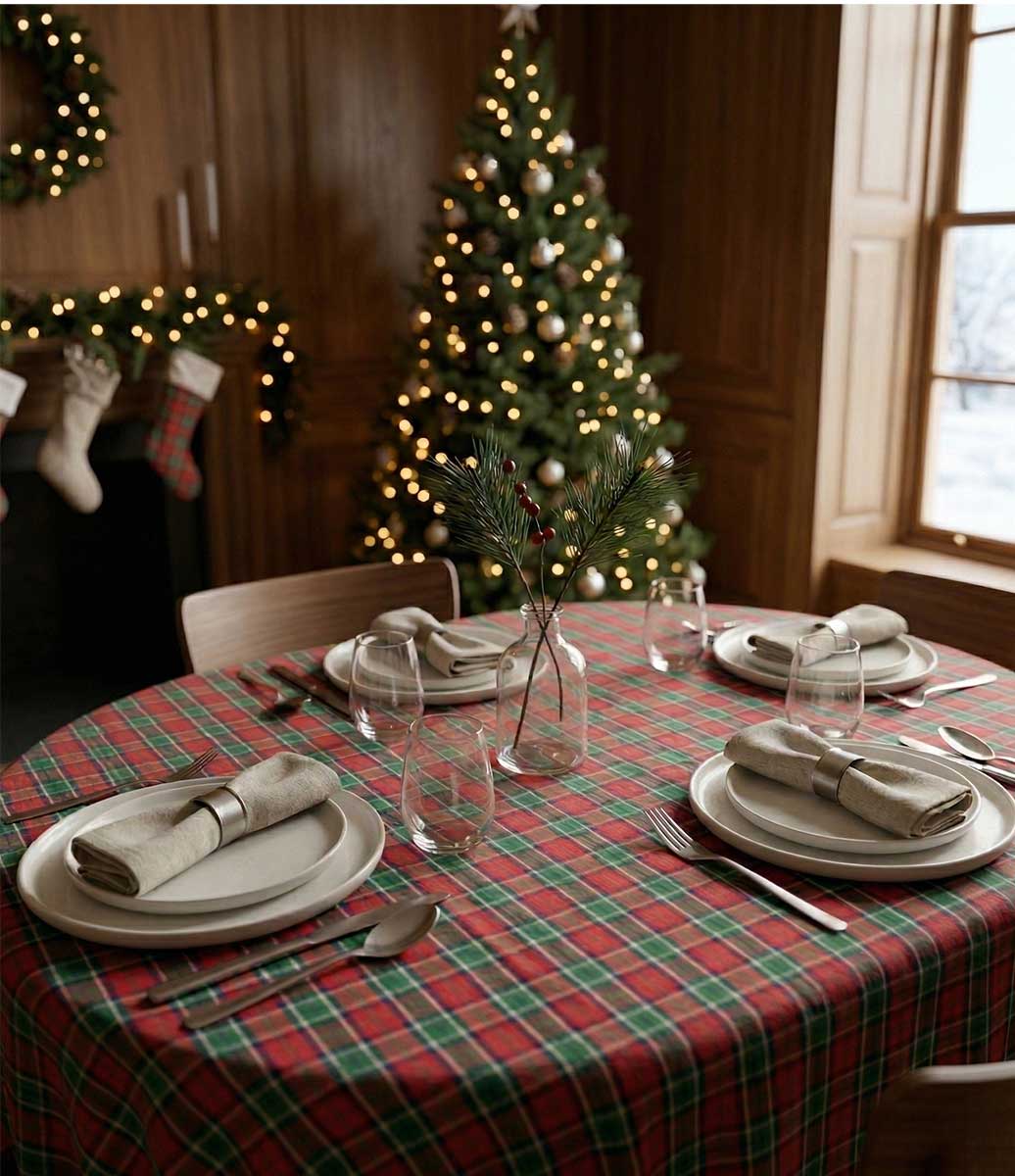 A combinação de xadrez em tons de verde e vermelho é mais do que uma estampa; é uma declaração de estilo atemporal. O padrão jacquard confere uma textura única, proporcionando um toque luxuoso à sua mesa. Seja para um jantar casual ou uma celebração especial, sua mesa será o centro das atenções.