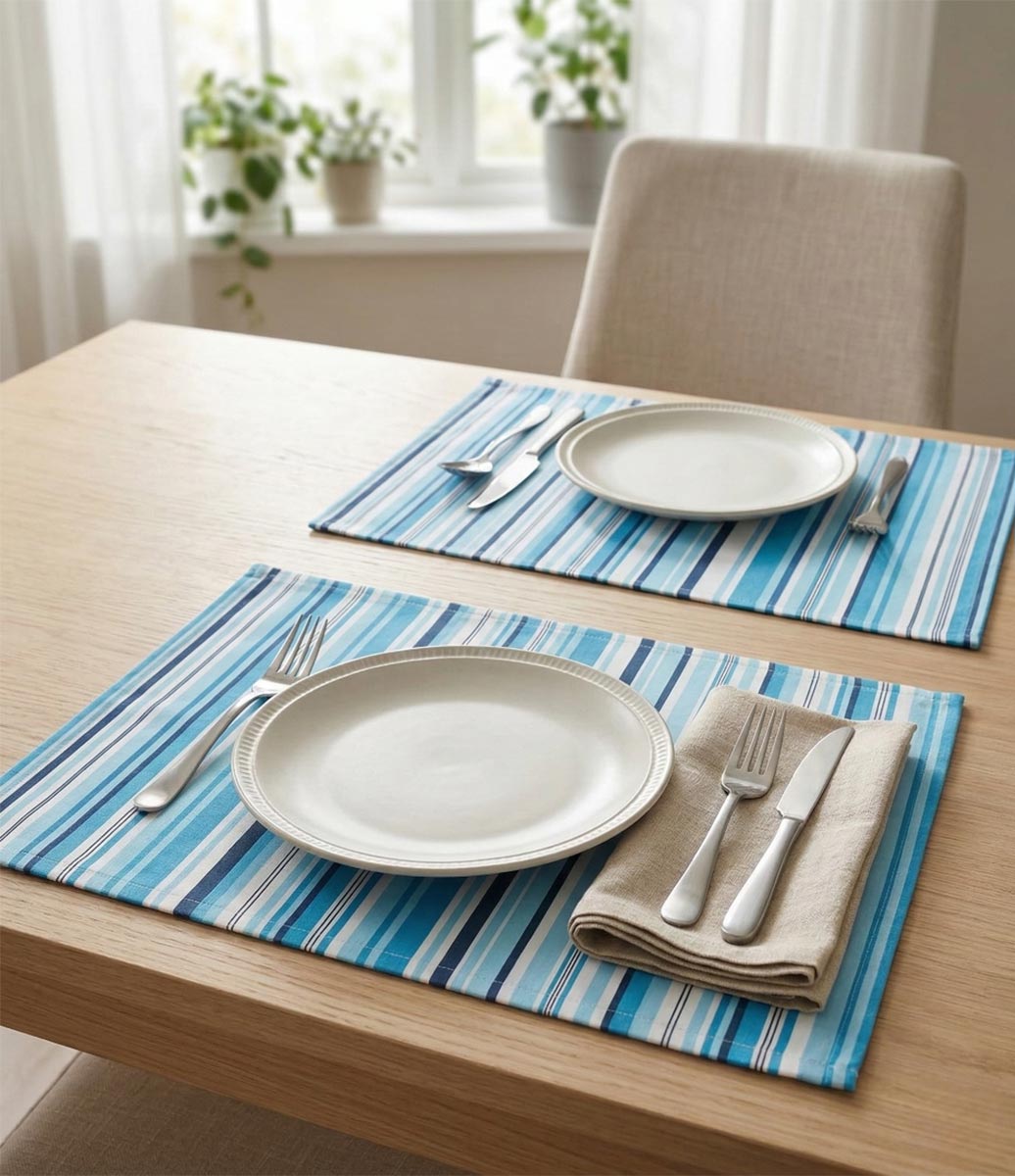 Alie a praticidade e beleza com este lindo jogo americano de 6 peças Jogo Americano Impermeável Azul Listrado. Possui um ótimo visual com listras decorativas em belo tom de azul com branco. Fabricada em tecido gorgurão com camada impermeável dos dois lados.