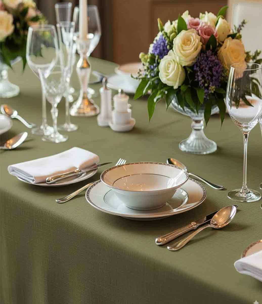 Esse tom de verde é um verdadeiro curinga da elegância contemporânea: ele transmite tranquilidade, frescor e um toque de realeza. É uma cor sólida e super elegante que foge do óbvio, servindo como a base perfeita para destacar as suas louças, talheres e taças de cristal com um contraste absolutamente luxuoso.