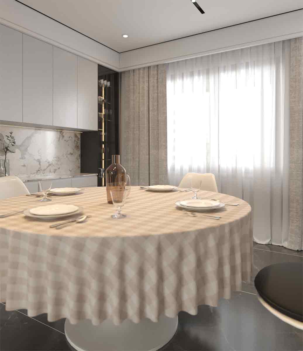 Dê um toque de elegância à sua mesa com a Toalha de Mesa Redonda Xadrez Nude Sob Medida. Seu padrão clássico em tom nude combina facilmente com qualquer ambiente, trazendo charme e sofisticação para refeições do dia a dia ou ocasiões especiais.