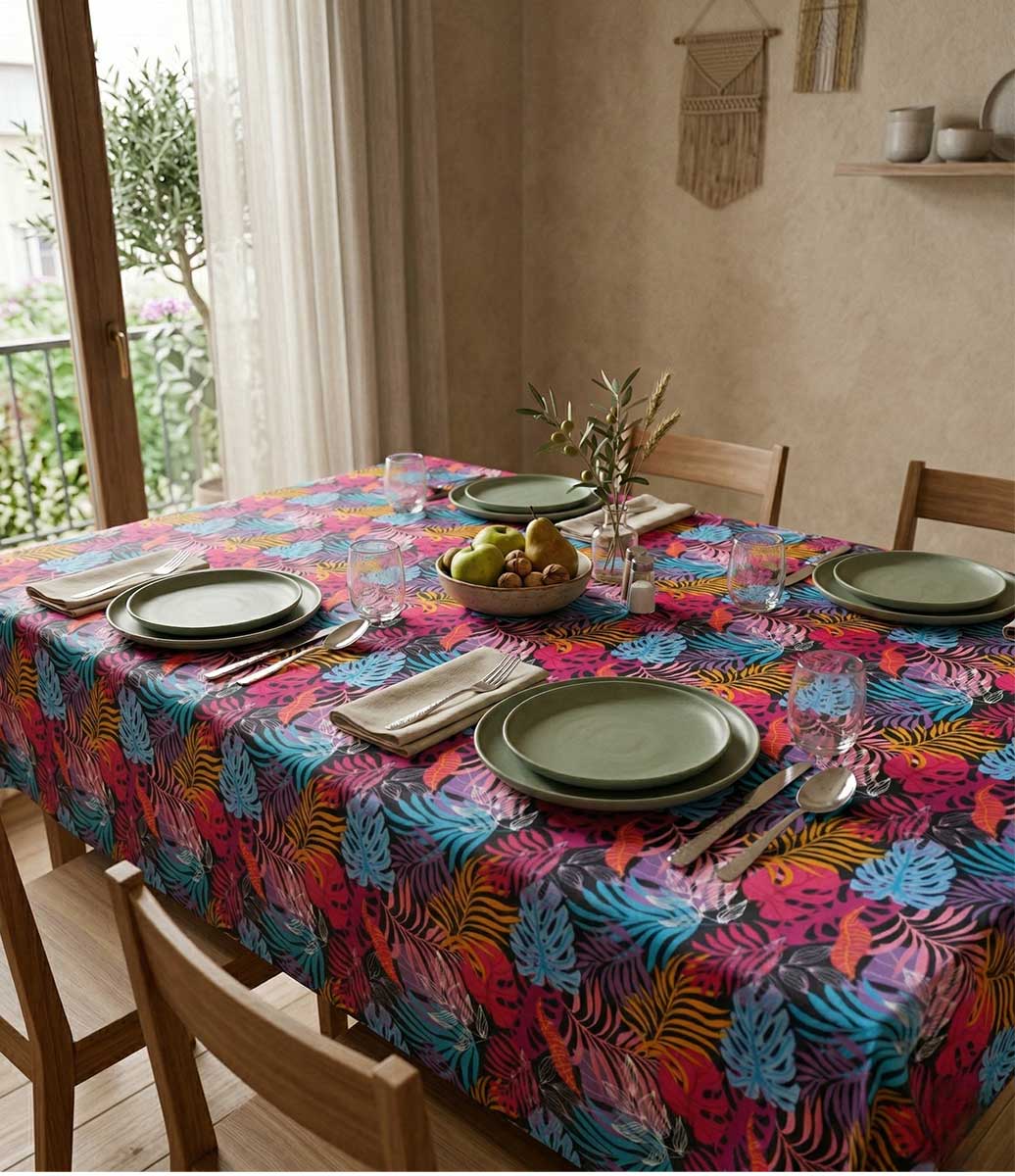A Toalha de Mesa Retangular 8 Lugares Rosa Folhagens embeleza a sua casa com uma cor infundível e um grande estilo. Deixe as melhores impressões ao decorar o seu lar com um desenho único.